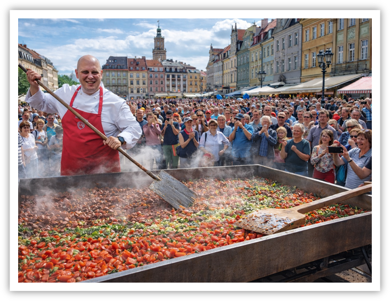 Proponujemy niezwykle widowiskową i angażującą atrakcję – kulinarne bicie rekordów w wielkości przygotowywanej potrawy!